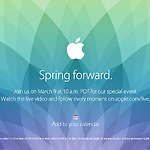 드디어 애플의 이벤트가 몇 시간 남지 않았습니다. Spring forward라는 문구를 전면에 내세우고 있는 이 행사는 애플 워치의 상세 사항이 공개될 것이라는 예상이 지배적입니다. 이미지 출처: 애플 홈페이지 현재 애플 홈페이지의 카테고리 중 하나를 당당히 차지하고 있는 Watch에는 애플 워치의 디자인, 적용된 기술, 사진들, 그리고 WATCH, WATCH SPORT, WATCH EDITION으로 구분되는 각 콜렉션에 대한 정보들이 노출되어 있습니다. 이미지 출처: 애플 홈페이지 하지만 애플스토어에서는 아직 애플 워치의 정보를 찾아볼 수 없죠. 2015년 초에 공개될 것이라는 정보만 있습니다. 이미지 출처: 애플 홈페이지 일반적으로 판매되는 애플 워치 버전은 349달러로 예상되고 있는데, 오늘 드디어..